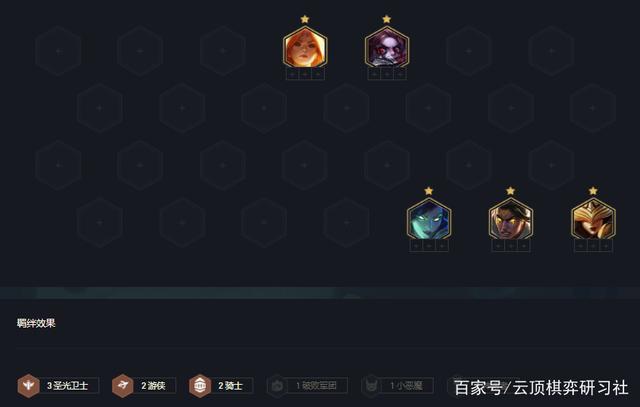 野怪后看装备是否适合本套阵容,如果适合就可考虑这套阵容,打工阵容最优就是考虑3圣光打工,一方面3圣光增强双抗坦度优质,另一方面就是前期圣光棋子中蕾欧娜肉坦度高,剑魔技能拥有续航,维鲁斯、辛德拉前期的打工皇帝伤害非常高。