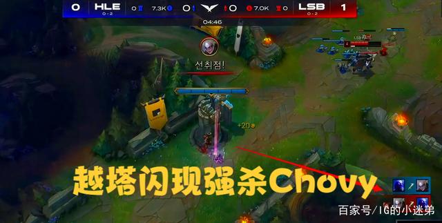 HLE在对阵LSB的第一局给Chovy选择了一个加里奥中单对线LSB的中单发条,这明摆着是让Chovy抗压。可Chovy靠着自己的个人实力,前期并没有被发条拉开太大的经济差。