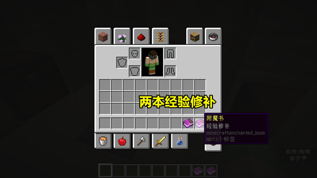 搜刮完四个宝箱后发现,其他的东西都不重要,光是两本附魔书就让玩家笑开了花。没想到吧,这个沙漠神殿居然有两本经验修补,天肥开局毋庸置疑。