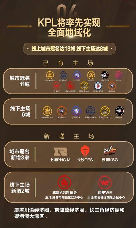 接下来就是21年KPL秋季赛将要迎来的变化。KPL俱乐部地域化继续推进,KPL主场队伍扩张至13个。TES落地长沙,KSG落地苏州,RNG.M落地上海。KPL16只固定席位队伍仅剩VG、RW侠2只队伍还没有确定主场城市,不少东北的小伙伴们说到:来东北一个吧!东北的存在感太低了!最后这两只队伍到底会花落谁家呢?超级兵也蛮期待的。届时所有队伍都有了自己的主场后,以后打比赛选手们就真要满天飞啦!