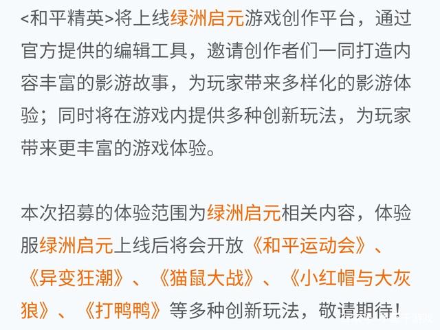 这些玩法,其实都是使用和平精英推出的新功能“绿洲启元”创作出来的。这5个玩法,应该就是和平精英上线的第1批“绿洲启元”创意玩法,小鱼干个人还是非常期待的。