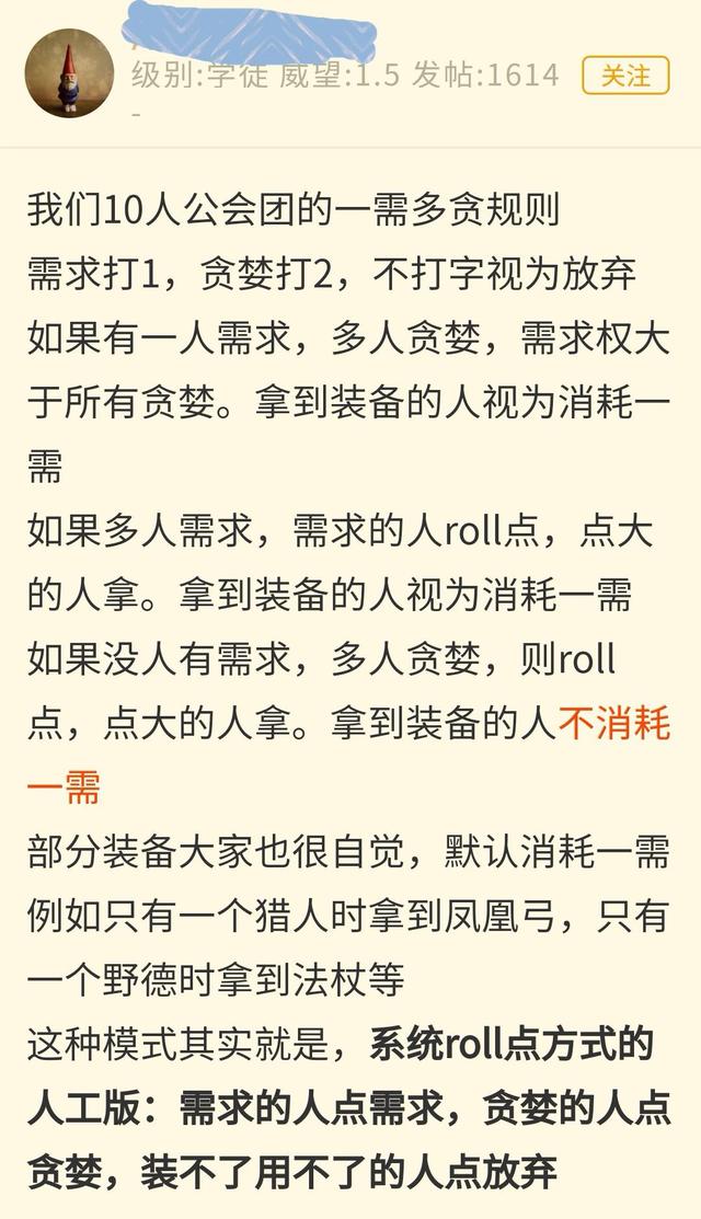 散人怎么拿散件?因此一需多贪团本质上就不合适“混合”团队,更适合用在纯公会团上。但是如果玩家已经组成了“纯公会”团了,那干脆完全放开纯ROLL岂不是更好?根本没有必要再使用操作繁琐的一需多贪团!这也是一需多贪团存在价值的尴尬之处。