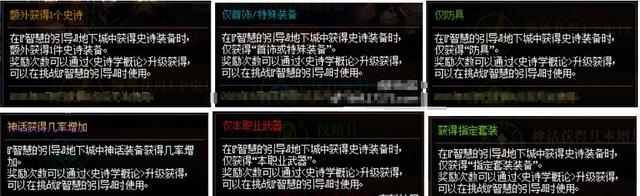 除了这些BUFF效果,我们完成活动升级之后还可以获得五种奖励道具哦,它们分别是智慧的引导晶石、百级史诗装备随机转换券(武器除外)、智慧的指引药剂、百级史诗装备自选礼盒以及百级史诗套3部位自选礼盒。