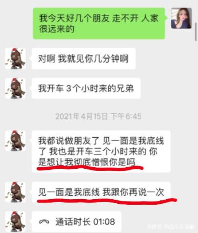 昔日怼天怼地王校长,就在追求小网红的路上翻了车,在孙一宁发出来的聊天截图中,校长曝出了一个大家从未看到过的“舔狗”形象,更是一度被孙一宁的花式回答怼到哑口无言。甚至在孙一宁已经明显表现出不喜欢王校长之后,校长依旧不依不饶,一路追到孙一宁所在的城市,要求再见一次,并且表示这是他的底线,也就是我们开头的梗的由来啦。