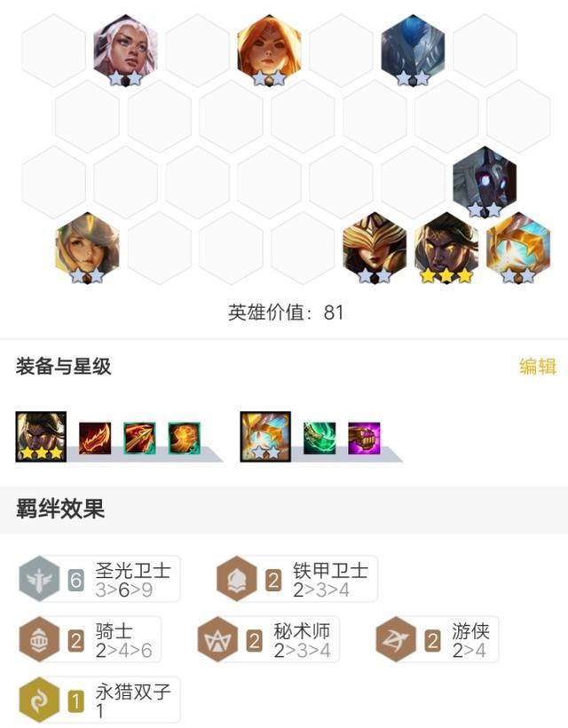 圣光卫士羁绊,应该说是目前为止最为热门的,因为天使阵容中就少不了,但如果说你本来打算玩天使的,可是运气不佳,总是看不到天使,并且自身想在快节奏的高分局上分,那么接下来学习这套体系吧。