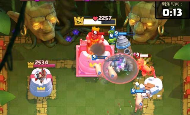 但关键是,CR又赋予了这张卡牌一个神奇的功能。只要你愿意,钻机可以像矿工那样跑到竞技场的任何地方,所以这张卡牌去最多的地方就是对手的公主塔下。而且在钻机破土后,就会立马出现一个哥布林战斗,速度堪比气球兵的首次攻击,如果预判不准的话,哥布林的第一刀肯定会砍向公主塔。