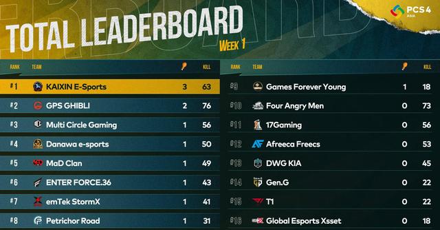 而韩国最有名气的战队GENG,在第一周的比赛表现并不好,一鸡未吃且只获得22淘汰,倒数第三!看过比赛的观众应该知道,GENG在第一周的比赛中没有什么存在感,甚至让人以为GENG没有获得PCS4的席位!