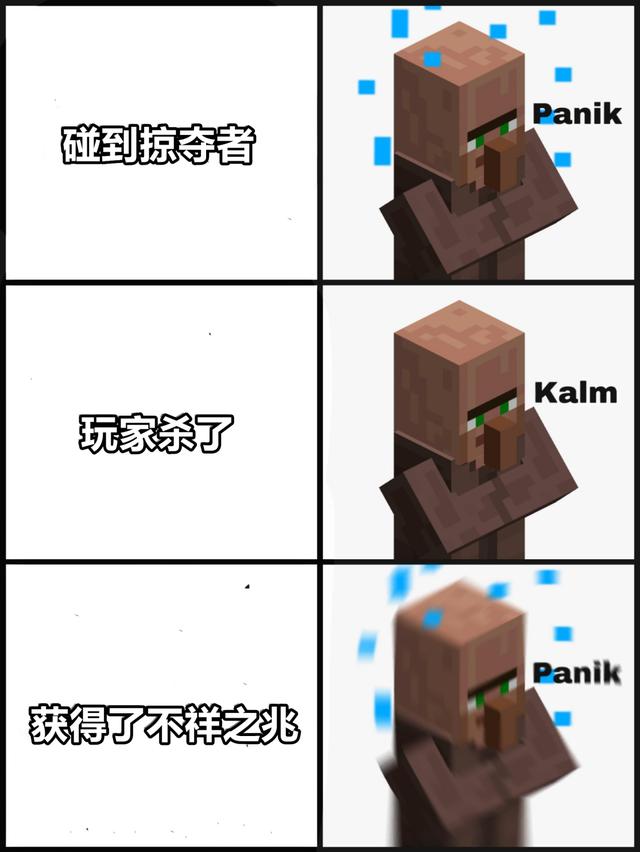村民碰到掠夺者那必然是单方面的被揍,村民能走的只有快跑。这个时候玩家出现,帮助村民打败了掠夺者,就在村民放轻松之后,村民突然发现那是掠夺者队长,玩家身上已经有了不祥之兆,因此触发了袭击事件,这才是更大的麻烦。
