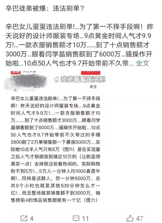 不过有细心的网友发现这次要代替师傅出征的徒弟蛋蛋是很不简单,早前销售额超出十个亿,大有接班人超过师傅辛巴的架势,这次代替师傅出战看起来也是信心满满,不过这位被辛巴力捧的徒弟却被曝出违法刷单的消息,网友称其为了得第一不择手段,引发不少热议。