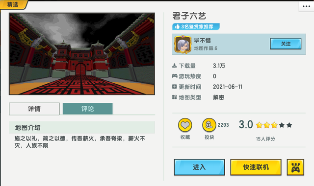 譬如这张名为“君子六艺”的地图,该地图的创作者就用宏大的游戏场景向玩家展示了古代艺术的魅力,那么话不多说,一起来了解一下吧。