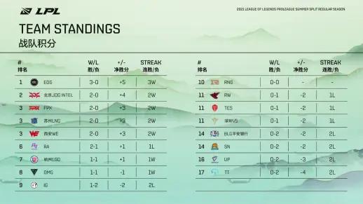 LPL夏季赛的第一周比赛已经结束,虽然不久前刚夺得MSI冠军的RNG回国后还在隔离因此还未登场比赛,但是夏季赛的LPL精彩程度仍旧是远超观众预料。由于夏季赛的成绩关乎S11世界赛名额,因此LPL但凡有实力的队伍都是拿出了自己最好的状态,加上转会期一些队伍补强、磨合,使得夏季赛的竞争十分激烈,比赛也变得愈发精彩。