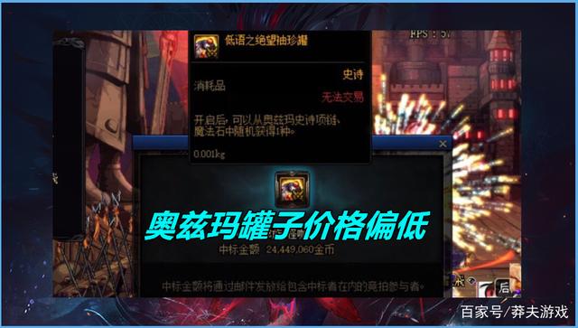 3、奥兹玛装备罐子,一个罐子等于一张金牌,但其实罐子的获取途径很多,材料兑换、金牌获得,合成等等,而且对于大部分玩家来说,奥兹玛装备都可以慢慢升级,并不会太刻意追求进度,所以价格要比想象的小,3000万以下拍下可算“捡漏”!