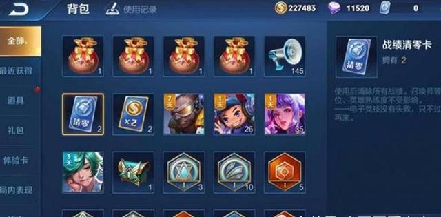 战绩清零卡,又一个很多人没见过的道具,这款道具卡在旧版本的时候只要你的段位达到了荣耀黄金,并且完成签到活动,就可以直接领取到两张清零卡,该清零卡主要用来刷英雄胜率的,不过现在已经绝版,在很早之前就被下架了,可能是因为太多召唤师用来刷胜率,所以才下架的。