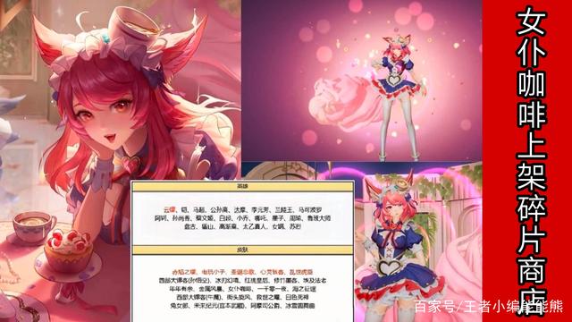 当前赛季达到指定等级后便可免费继承。相信玩家们都听到了关于女仆咖啡优化的消息,如今这款勇者已经优化完成,皮肤建模以及局内效果,也都被策划提前曝光,但是目前优化后的这款皮肤还未上架。能能熊目测应该是在新赛季开启后,妲己的这款优化后的皮肤,将会随着新赛季皮肤,以及战令皮肤一同上架。玩家们记得提前准备好皮肤碎片,等待这款皮肤上架皮肤碎片商店后,直接将其入手,毕竟也是款史诗级皮肤。