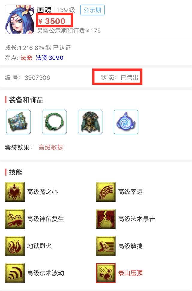 入坑梦幻多年,也算是积累了不少的经验,万万没想到,一位资深老玩家却在藏宝阁上当了一次盲僧,真是让人郁闷至极。既然事情已经发生,后悔也没有什么用了,默默接触现实吧。不过这只画魂不算贵,也亏不太多。小心驶得万年船,希望老哥在以后的游戏中小心一点!