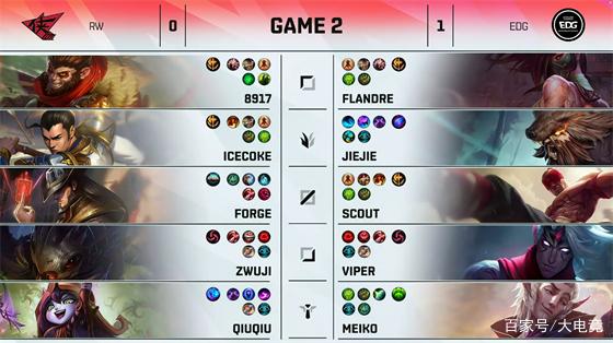 EDG队员复活后比较轻松地拿下了第二条大龙,带着兵线破掉RW最后一路高地,RW以攻为守强行开团,结果葬送了猴子和卡牌的性命,EDG一鼓作气结束比赛。恭喜EDG 2-0战胜RW,取得四连胜!