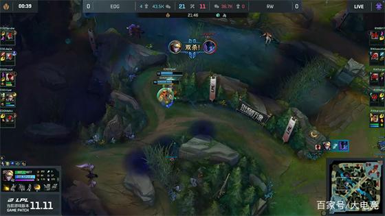 双方前中期围绕各种战略资源展开了非常激烈的争斗,虽然RW的主动进攻取得了一些收获,但EDG一直牢牢地将比赛主动权抓在自己手里,EZ和皎月打出了非常客观的伤害,17分第三条小龙刷新,EDG抱团快速拿龙后与RW开启团战,盲僧瑟提和牛头组成及坚不可摧的前排,带领队伍一路追击打出0换4。两边补给过后又在上路开战,EDG再次打出2换4,将经济优势扩大到7千块。