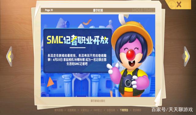 现如今的《摩尔庄园》一共有3个职业,种地、导游、餐馆老板,在新版本的预告中,将会在下周出现一个名叫“记者”的新职业。