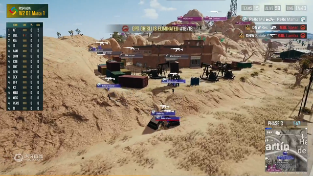 说到马哥那个高点位置,其实是在第3圈的时候,PeRo主动开车撞点,以失去XDD和MAMU为代价,2换4拿下了E36所占据的大仓,不过,随后马哥和灰灰一直遭到周围GEX的骚扰,最终灰灰被GEX淘汰,从4圈开始马哥就以独狼的姿态一个人在场上。