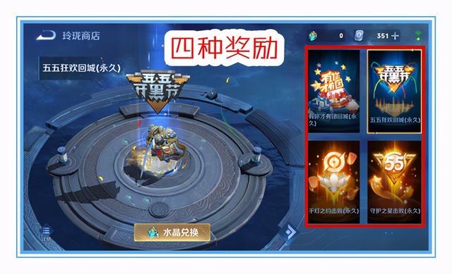 玲珑水晶可以兑换的道具是各种永久回城和击败特效,它们分别是有你才有团和五五狂欢永久回城特效以及千灯之约、守护之星击败特效。