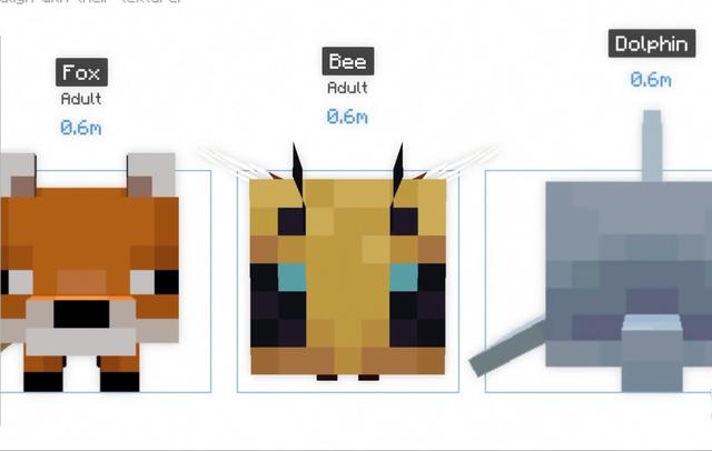 狐狸在游戏中一直有着小可爱之称,狐狸的身高也并不高,身高仅仅为0.6m。但也高于以上的生物,比较令人震惊的是蜜蜂的身高。蜜蜂在游戏中看着不大,但身高也达到了0.6,这是意料之外的。海豚也出乎意料,看着大但是并不高,与狐狸、蜜蜂一样高。