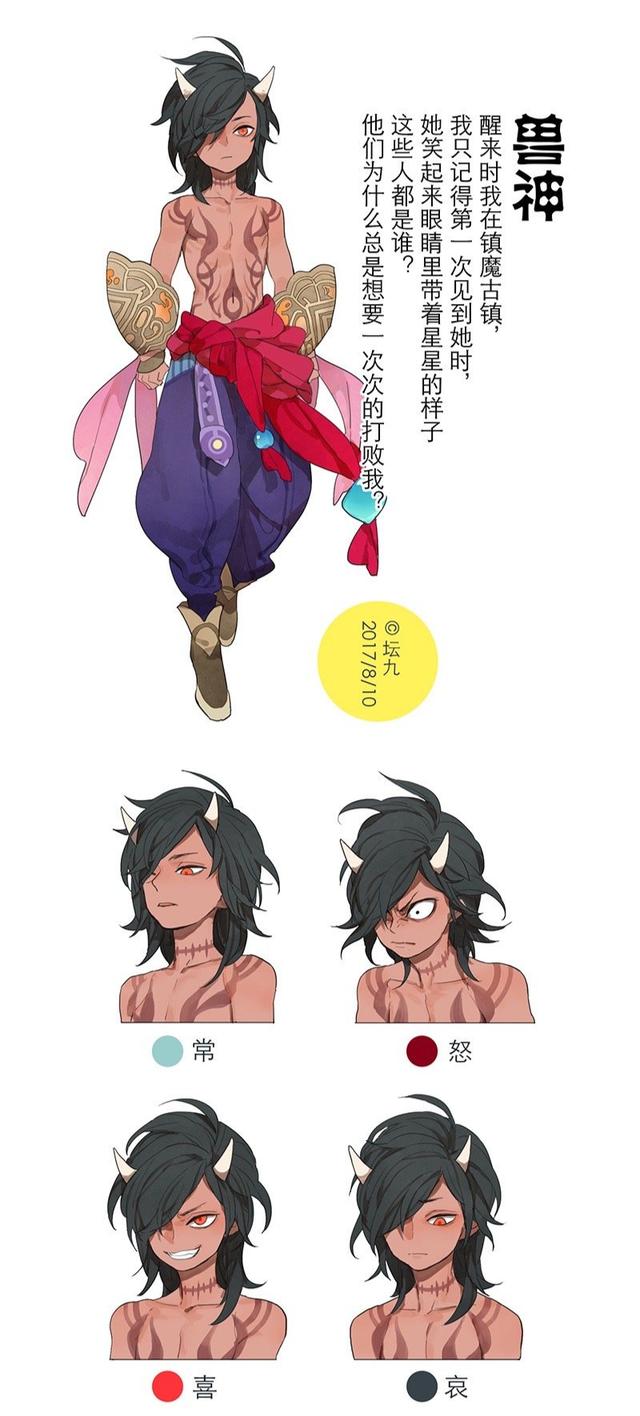 兽神是玲珑骨血所化,男生女相,全书武力值巅峰。外貌被形容为“一个身着鲜艳丝绸衣衫的少年,面容英俊的几乎是带些妖艳的感觉”。