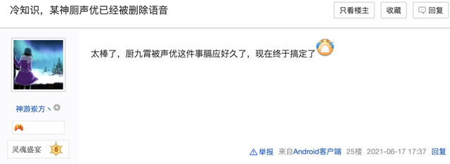 茅野爱衣配音被删不是笔者自己发现的,因为我还没有抽到九霄,是在贴吧里看网友发的帖子,虽然我没有九霄,但是《崩坏学园2》中的角色配音都是可以试听的,经过笔者和其他网友测试,可以确定不是发帖者遇到了BUG,可以切换茅野爱衣,但是她的声音被悄悄删了,完全的无声状态,至于原因大概可以猜出来。