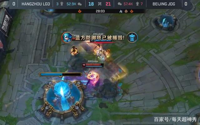 决胜团战在28分钟上演,Lvmao洛再次找到开团机会,配合Zoom格温冲散LGD阵型,由Zoom格温打残LGD前排英雄,装备成型的Kanavi佛耶戈进场收割,赢下团战后,JDG一波终结比赛,在Zoom格温的带领下,JDG险胜LGD拿到赛点。