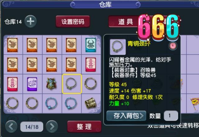 上面是一件45级的召唤兽装备,这种45级的召唤兽装备只能在场景战斗中获得了,而且获得的大部分是白板,只有极少的一部分能够用有属性,更别说增加的属性还比较高了,这件装备增加了17点伤害和10点力量。现在这种装备就比较值钱了,有39级PK的服务器能够卖到上千块。而上面的这件是这位玩家翻仓库的时候找到的,算是意外之喜了。