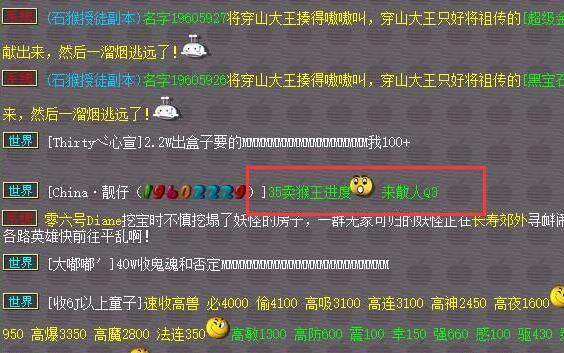 看到上面喊话卖猴王进度的这位玩家了吗?正常的情况下卖猴王副本任务进度的都是五开,但是上面的这位玩家却是散人,他要带着其他的四名散人玩家卖猴王出世副本任务的进度呢,只是小编想问一下上面的这位玩家,他卖了猴王出世的副本任务之后要给其他的队友分红吗?如果不给,小编感觉单开带队的玩家通过这样的方式也是可以赚钱的。