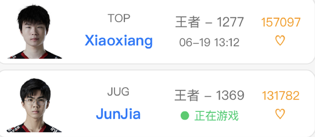 这支队伍就是EDG,目前EDG的成绩还是相当不错的,队员们的实力也是极为强大。相信今年可以冲击一手梦想。除此之外,这支队伍的首发选手不但十分强大, 替补队员也是很厉害的。甚至有两个是韩服千分选手,他们分别是xiaoxiang和junjia,这两位选手都是韩服千分,小翔是1277,junjia是1369,这样恐怖的分数,真是让其他队伍馋得慌啊。