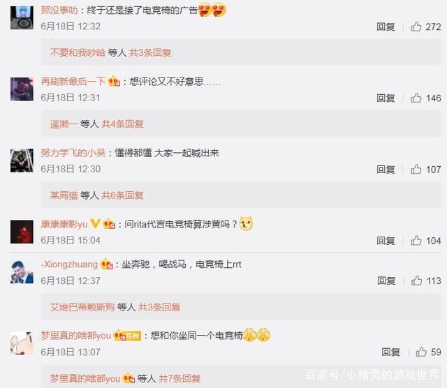而LPL的官方主持人余霜在看到之后,却连发三个问号,这也太真实了吧?看来余霜跟广大网友们的想法还是非常一致的嘛,在看到这则消息之后都非常震惊。不过也有网友调侃,Rita代言电竞椅,这算涉黄吗?不得不说,这些网友们的脑洞是真的大啊。话说,小伙伴们,你们对于Rita代言电竞椅有什么看法呢?欢迎留言讨论!