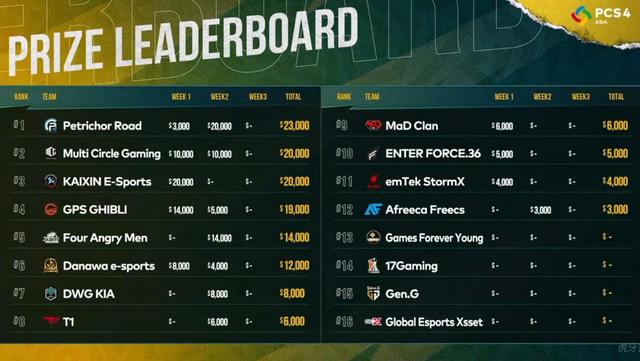 这一周PeRo战队强势夺冠,PCL赛区也包揽了前3名,不仅完成了PCS4洲际赛周决赛的两连冠,而且也继续着对韩国战队的碾压,但是本届PCS4洲际赛还有最后一周的比赛,目前PeRo等PCL战队在总奖金榜上的领先优势并不大,因此PCL战队想要继续卫冕PCS4洲际赛的冠军的话,仍然不能掉以轻心,希望他们在最后一周能够同样发挥出色,为PCL赛区拿回洲际赛的奖杯。