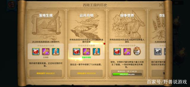在这一个长卷中,可以看到历史当中的每一个发展阶段,这就类似于全服中的所有玩家成长史,在什么时间完成了什么任务,一起达到了什么标准,在这个王国的历史卷轴中都有详细记载。