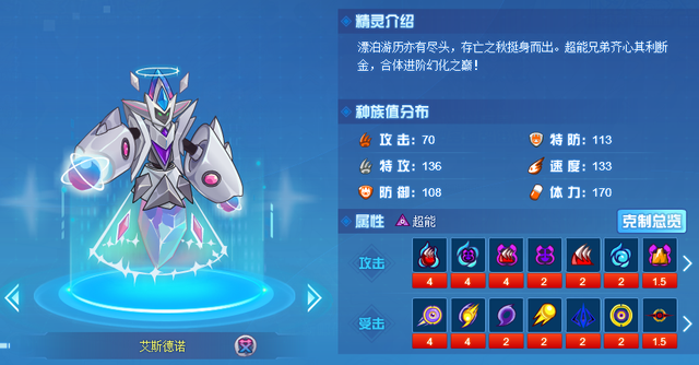 尼尔的最终形态叫艾斯菲亚,种族值虽然不是很高,属性也比较的拉胯,但是它的大招威力是150在早期是很稀有的,而且还有一个可以强化自身特殊攻击等级加2的强化技能。另外还有无视速度的先手技能,所以技能机制在早期就已经很完善了。