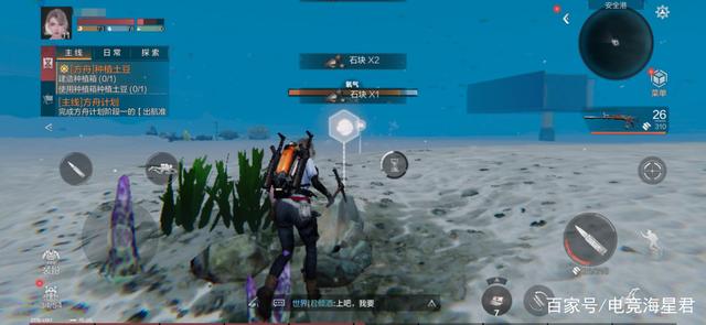 既然是海洋废土的背景,开发组自然为玩家准备了广阔的活动海域。游戏中,玩家虽然不能说是“开局一把刀,装备全靠捡”,不过刚从休眠舱醒过来的玩家也的确称得上是一穷二白。因此,玩家需要背上氧气瓶前往海底进行采集与探索,食物充饥可以收集螃蟹、贝类再进行加工;城区基建和装备打造则需要石料、原木等资源的支持。可以说,采集系统是玩家进行其他玩法的基础了。