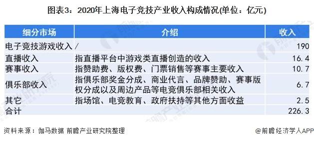 上海电竞直播收入、赛事收入和俱乐部收入初步估算分别为16.4亿元、10.7亿元、6.7亿元。