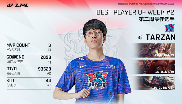 不得不说,伴随着夏季赛常规赛拿下五连胜,而在常规赛第二周拿下三连胜的LNG毫无疑问是成为了目前LPL战队中势头最猛的一支。而从常规赛第二周的最佳阵容中,LNG就有三位选手成功入榜最佳阵容。他们分别是打野选手Tarzan、中单选手冷少以及辅助选手Iwandy。特别是冷少,作为目前LPL年纪最大的中单选手,在春季赛末期的时候,冷少的状态其实是非常低迷的。不过,伴随着夏季赛的到来以及版本的变化,如今的冷少无疑是所有LPL中单选手中状态最火热的中单之一。