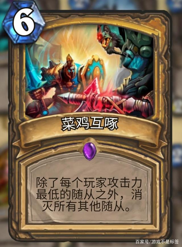 菜鸡互啄除了每个玩家攻击力最低的随从之外,消灭所有随从。你过来呀。