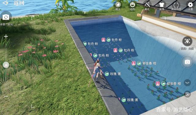更厉害的还在后面呢!这位玩家也许是平时被偷烦了,没有循规蹈矩在平地上种花,干脆直接把花圃放在了水池底下!就算把花给泡蔫了,都不给别人偷!面对这一池子水,我室友犯了难,直呼:太狠了吧!这还让我怎么偷呢?