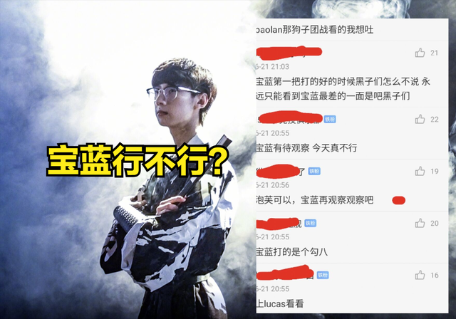 在评论区当中不少的网友都在讨论宝蓝和IG新人辅助卢卡斯谁更强,其中宝蓝无疑是被不少的观众所嫌弃,有不少的IG粉丝更是表示要换掉宝蓝换卢卡斯上场试试效果,不得不说宝蓝确实太惨了,毕竟自己半年没有打比赛突出首发上场,状态可能没有回到巅峰所以就算是IG战队比赛获胜了,自己还是要被一些IG粉丝们所吐槽。(我个人还是非常相信宝蓝的个人实力的,毕竟现在的宝蓝是IG战队当中唯一一个王者段位选手,作为IG战队当中rank分数最高的人我也相信宝蓝的个人实力)