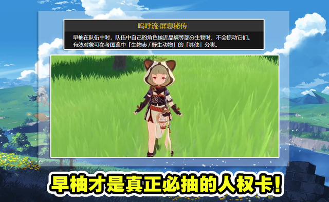 通过上面的分析可以看出,即将上线的三位稻妻城角色,其实强度都比较一般,因为璃月3C把输出角色的评价标准推到了前所未有的高度,而温迪和钟离也让辅助角色很难超越。但是即将上线的几把新武器倒是令人期待,尤其是苍古自由之誓和雾切之回光,确实比现有的单手剑强大太多,有条件的玩家可以抽取。另外,稻妻版本其实还有一位必抽的人权角色,她就是早柚,早柚的固有天赋呜呼流·屏息秘传可以让她接近野外生物时,不被对方发现,简直就是抓晶蝶、螃蟹的神技,锄大地必备!