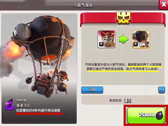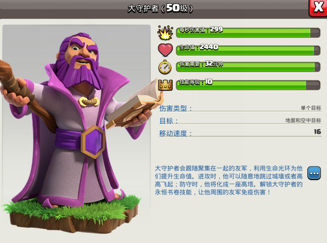 咏王的作用相信很多小伙伴们都会明白,他的等级越高对部队的增幅也就越大,我们拿气球兵为例,8级气球兵的生命值是840,而50级的咏王最大生命值提升是575,这样换算下来你的气球兵的生命值就变成了1415,这还没算上8秒的无敌时间,这就是英雄等级的价值。