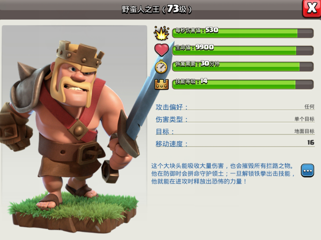 我们在低本的时候,只要得到一只强力的援军,基本上就能打得同本毫无还手之力,但是这样的优越感到了10本以后,就会变得越来越淡,而英雄的地位就显得尤为的突出,天女的重要性小白不想在做过多的阐述,我们从被经常被我们忽略的“蛮王”开始聊聊,蛮王的作用虽然不能和女王相比,但是整个部落还有比蛮王清边更好的兵种吗?万血蛮王能够给你意想不到的惊喜。