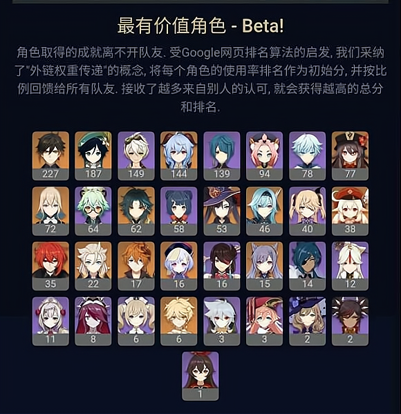 原神开服至今推出了不少角色,看得玩家们眼花缭乱。虽说不同的角色在战场中发挥的作用是截然不同的,但每个版本强势的角色只有那么几个。角色价值榜的意义就是为了让大众玩家对所处的版本有一个较为清楚的认知,从而避免踩坑,因此每个版本发布的角色价值榜也深受一些喜欢“PVP”的玩家推崇。