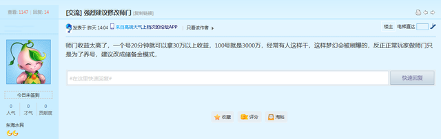 凭借着自己的“主观臆想”,玩家就认为师门活动影响了游戏平衡,真让人想笑。对于这样的“奇葩建议”,各位认为策划会听吗?想都不用想,肯定就是被秒拒的节奏!
