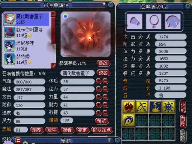 结果上面的这位大佬的炼妖真的就出现了问题,因为它合出来的召唤兽魔化毗舍童子,而且合出来的这只魔化毗舍童子的技能数量还特别的少,只有五个技能这样的魔化毗舍童子只能等待放生,所以上面的这位玩家就将来花钱将自己原本的八技能鬼将胚子给弄废了。