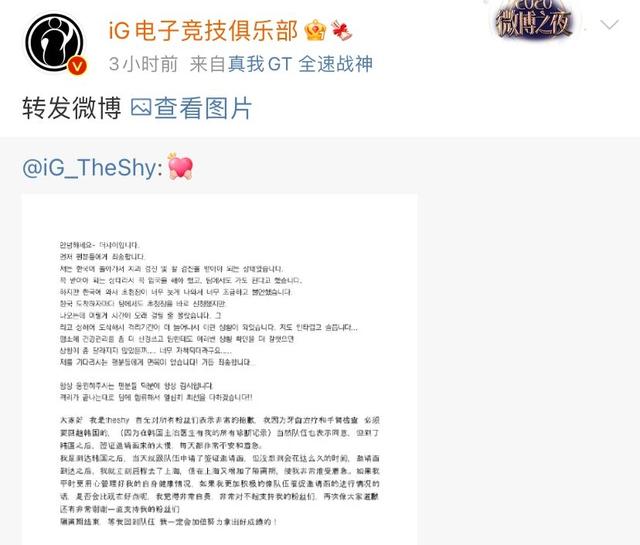 最终IG官博也是看到了粉丝的留言,最终转发了Theshy的发文,同时表示十分希望Theshy能够早日回归赛场!