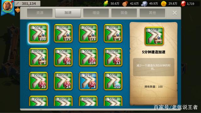 第一种:加速器,在游戏的前中期阶段,加速器可以帮助我们快速的进行发育,在短时间内可以帮助我们省略大量的时间,无论是用来建筑、升级还是修复,都有着非常不错的效果。当自己的城堡被攻打时,自身就可以通过加速器加快发展。