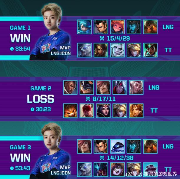 第一局比赛,游戏前期,LNG就各条线都取得了不小的优势,虽然中期的时候TT一直在寻找机会,不过几波团战下来。TT的劣势却变得越来越大了,而到了30分钟时,TT团战再次溃败,随后LNG不仅拿下了火龙,还拿下了大龙,最终凭借巨大的优势,LNG也是稳扎稳打拿下了第一场比赛的胜利。